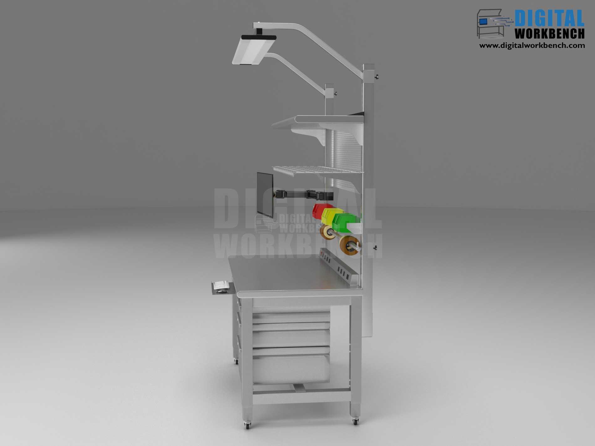 | Digital Workbench Pull Test | Verfies the ability of the workbench frame to endure a large force from the side. | The bench is secured to the ground and the top is pulled laterally at 450 psi until the bench has shifted 1 inch toward the force. Following this, the bench is inspected for damage and none was found. |