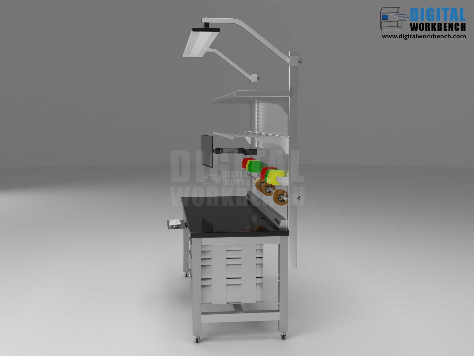 | Digital Workbench Pull Test | Verfies the ability of the workbench frame to endure a large force from the side. | The bench is secured to the ground and the top is pulled laterally at 450 psi until the bench has shifted 1 inch toward the force. Following this, the bench is inspected for damage and none was found. |